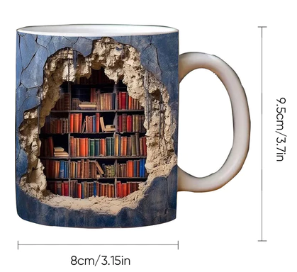 3D Library Bookshelf Mug, Coffee Mugs Gift for Book Lovers
